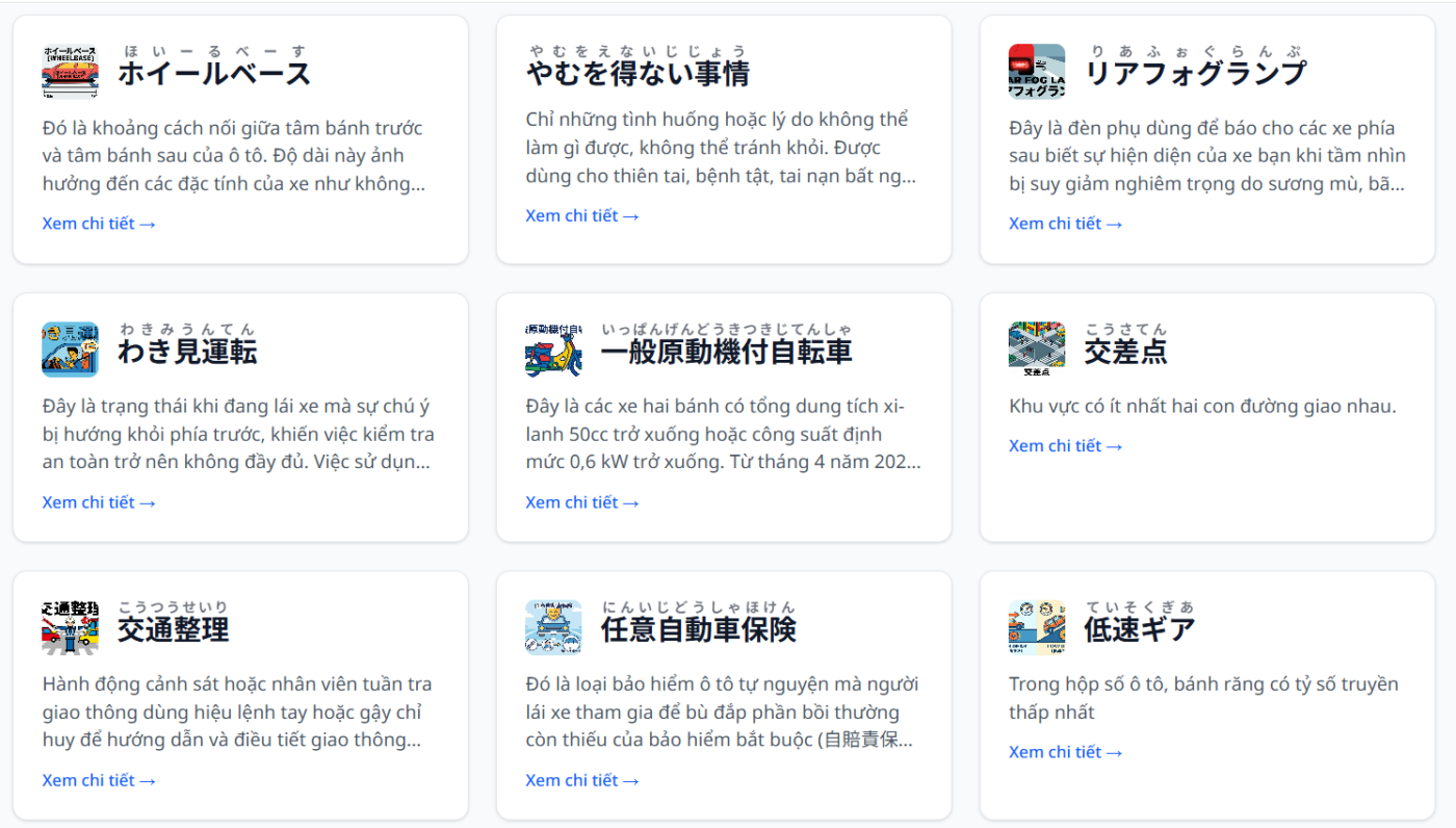 Ngoài ra, còn có bộ sưu tập từ vựng khổng lồ, với đầy đủ các từ chuyên ngành cần biết lái xe.