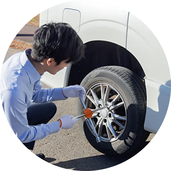 車両に積載されたスペアタイヤの交換による現場対応を行います。