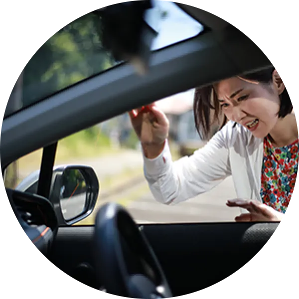 車にキーを閉じこんだ場合、 開錠作業を行います。